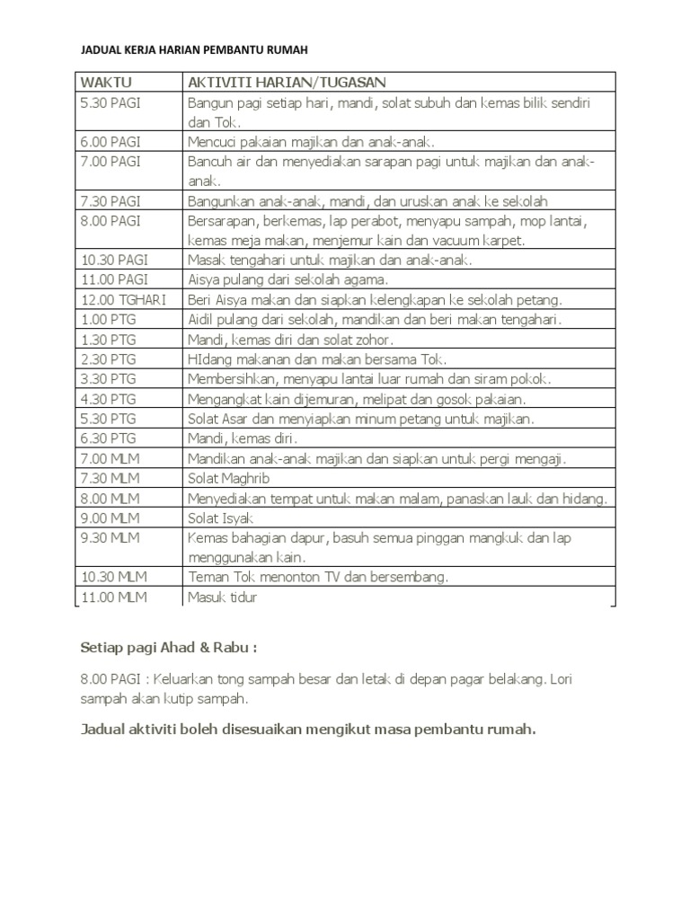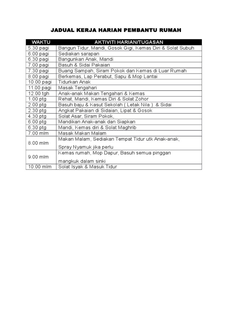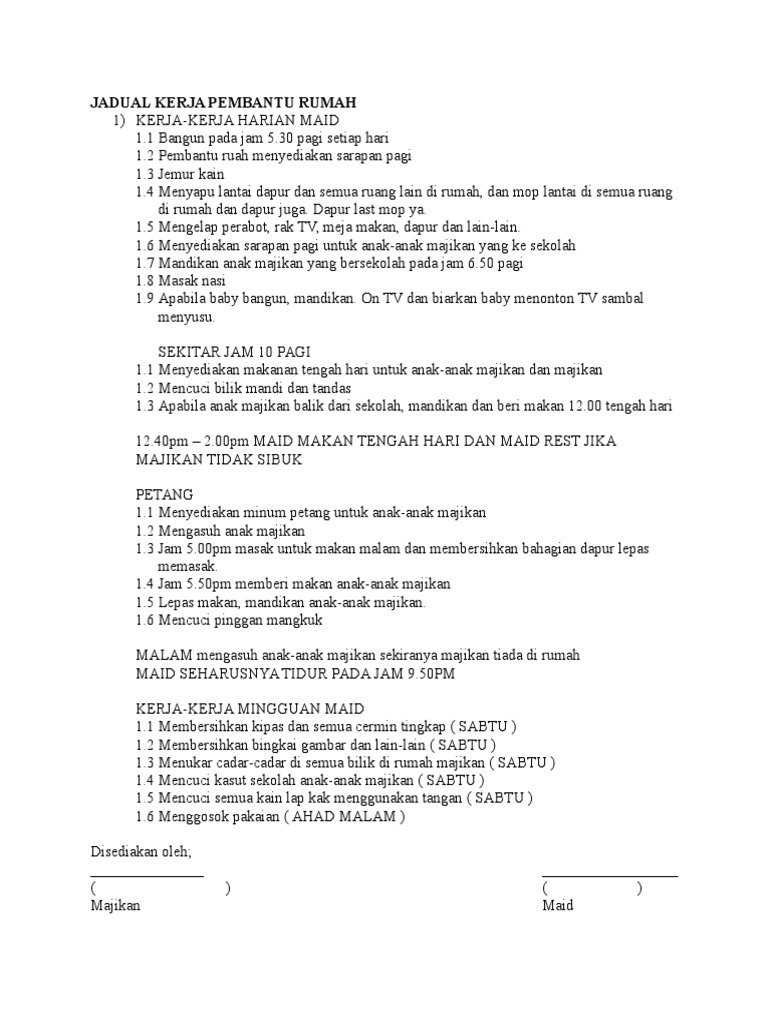 Jadual Kerja Harian Pembantu Rumah Pdf